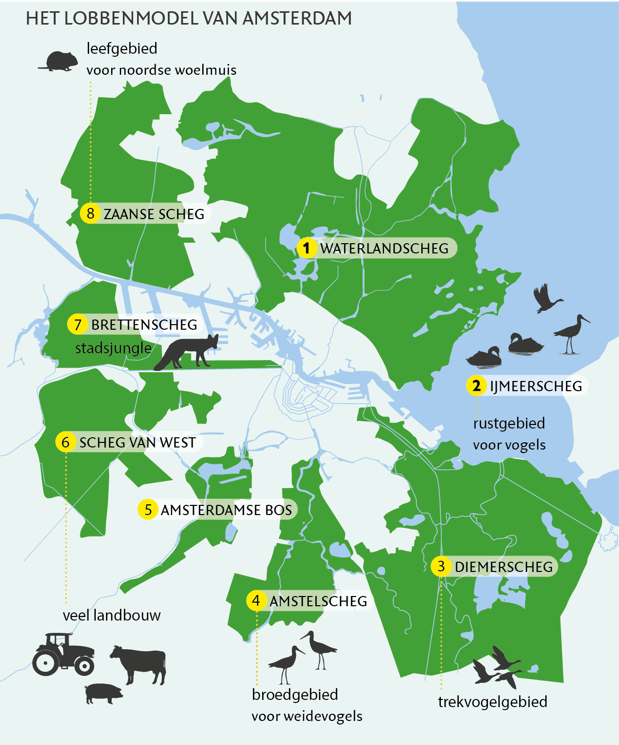 Het lobbenmodel moet garanderen dat er in en om de gemeente Amsterdam voldoende groen aanwezig is. ©Stichting BWM