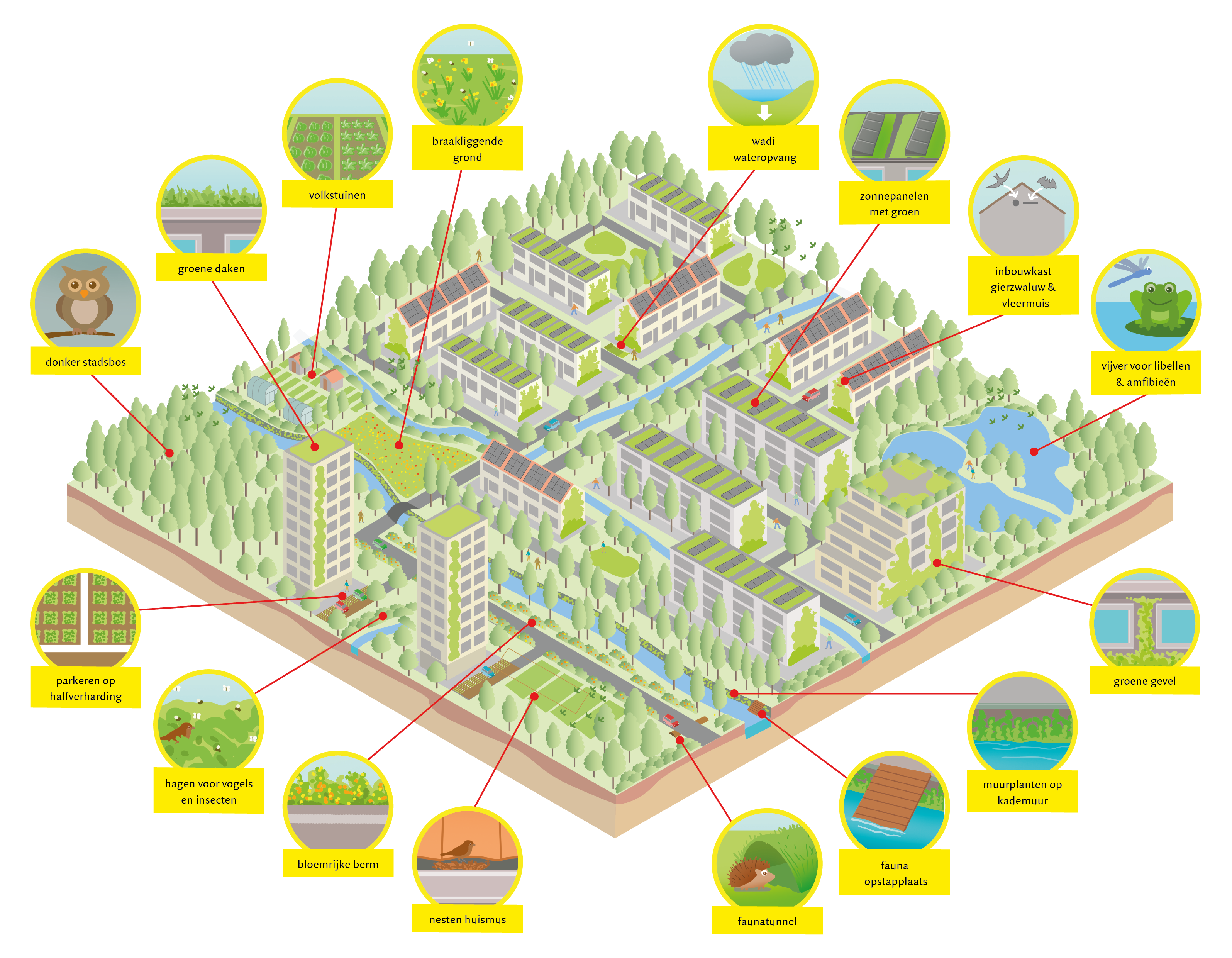 Impressie van een ideale natuurinclusieve stad. ©Stichting BWM