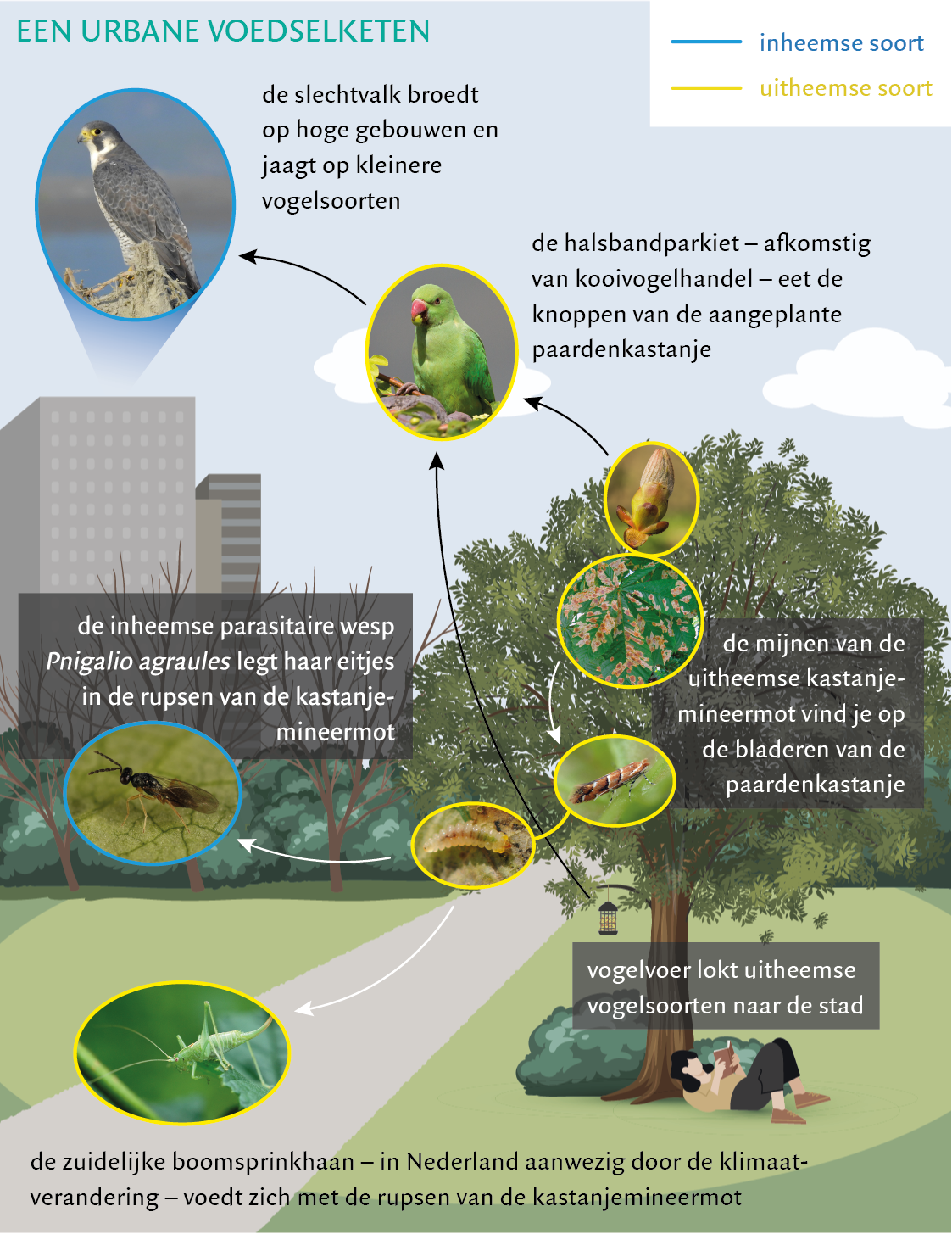Voorbeeld van de voedselrelaties in een urbaan voedselweb. © Stichting BWM