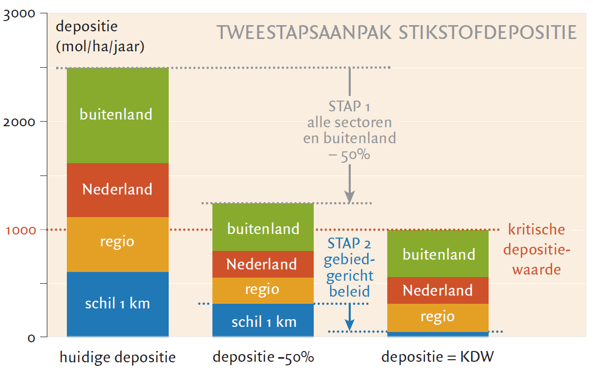 Blijft staan de vraag: hoe snel moet de depositie ecologisch gezien terug? Aangezien er al sprake is van een erfenis van meer dan vijftig jaar te veel stikstofdepositie, is het eenvoudige antwoord: zo snel mogelijk. Om een duidelijker tijdspad te adviseren aan de politiek moet de vraag in ecologische en juridische zin worden gespecificeerd. Dat kan door te vragen: bij welk depositieniveau is het niet mogelijk om instandhouding (laat staan verbetering) van de natuurkwaliteit te garanderen, zelfs niet bij het nemen van alle mogelijke herstelmaatregelen?