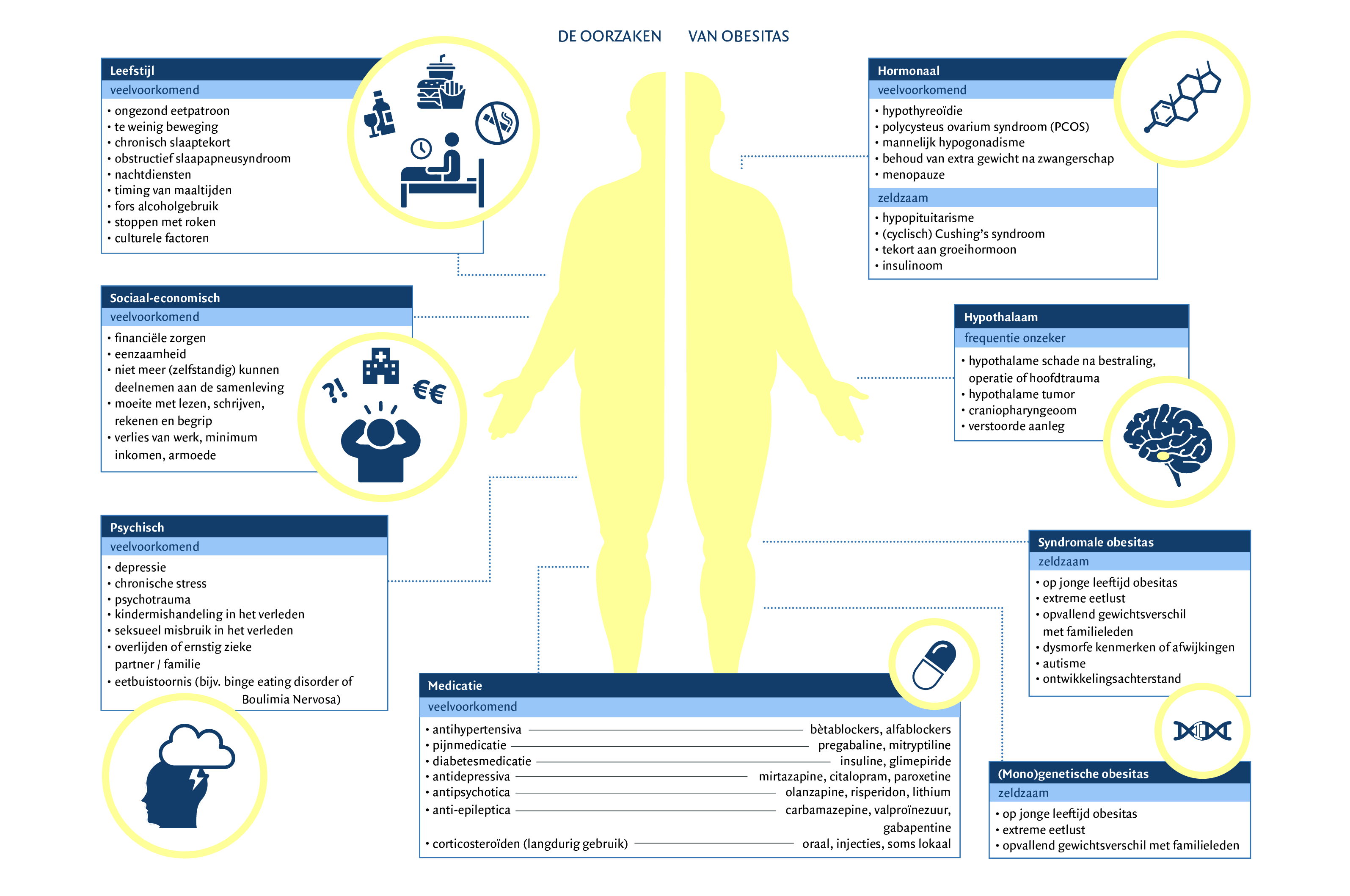 Verschillende onderliggende oorzaken van obesitas © Stichting BWM. Bron: Richtlijn Overgewichten obesitas bij volwassenen, PON