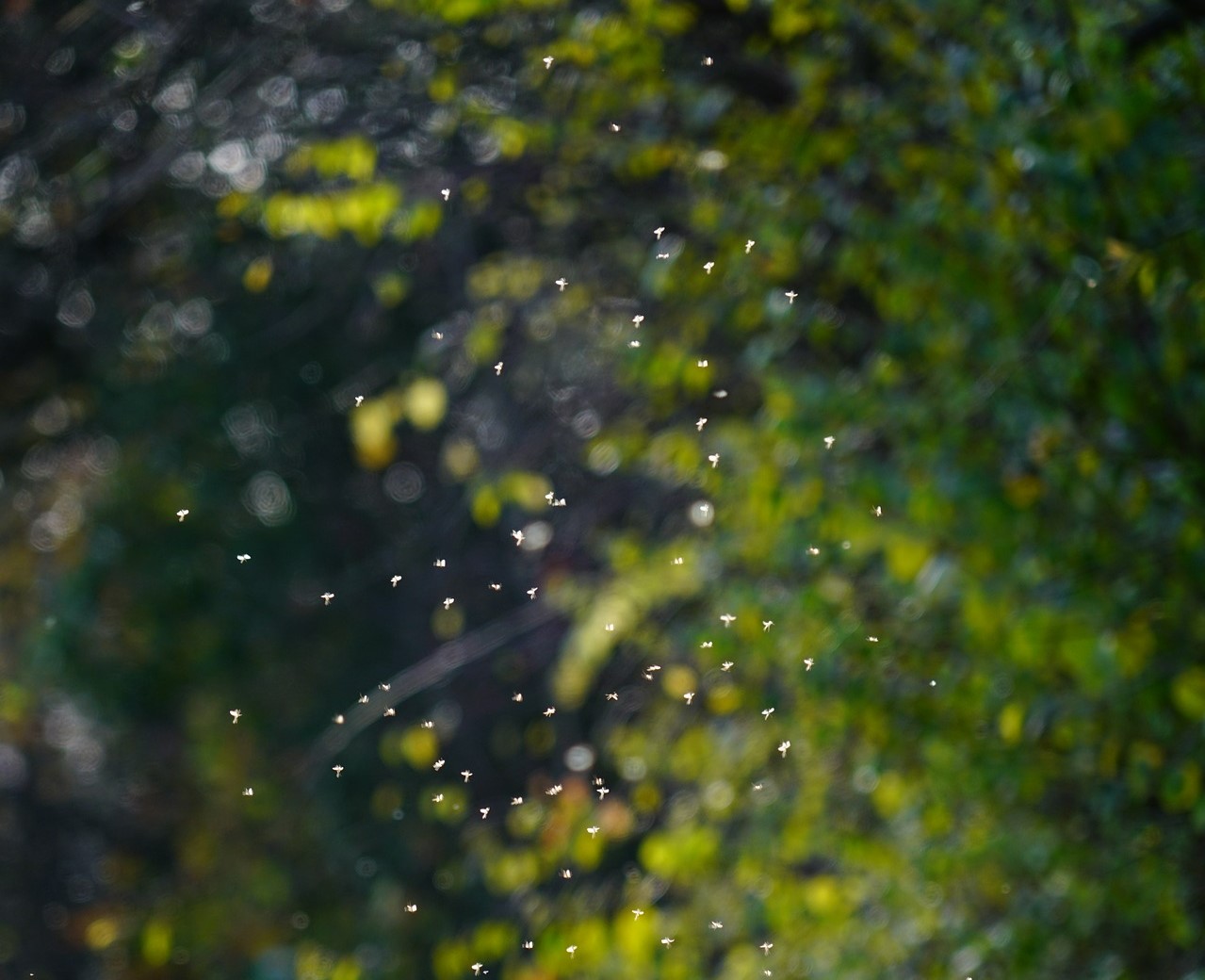De zwerm muggen of vliegen die vaak ’s avonds in de tuin dansen, kunnen grasvliegjes, dansmuggen of een zwerm steekmuggenmannetjes zijn. Ze behoren wel tot de orde der Diptera (tweevleugeligen), maar ze bijten niet.