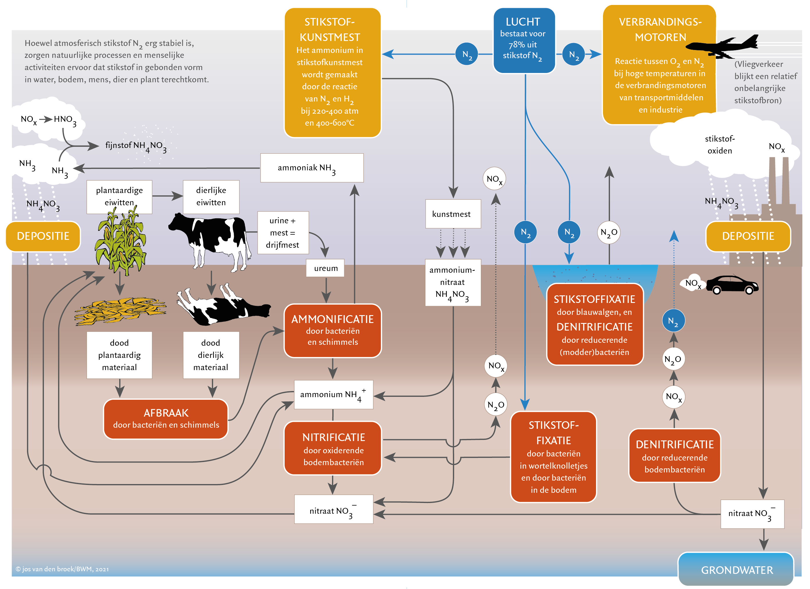 Milieuproblemen door te veel stikstof in bodem en water spelen in de hele wereld, maar in Nederland wel heel sterk. Hier worden bodem en water belast door een zeer hoge toediening van stikstofverbindingen in de landbouw, vooral via dierlijke mest, maar ook via kunstmest. Andere bronnen zijn het verkeer, huishoudens en de industrie.